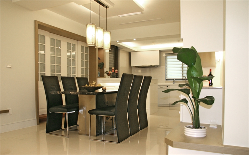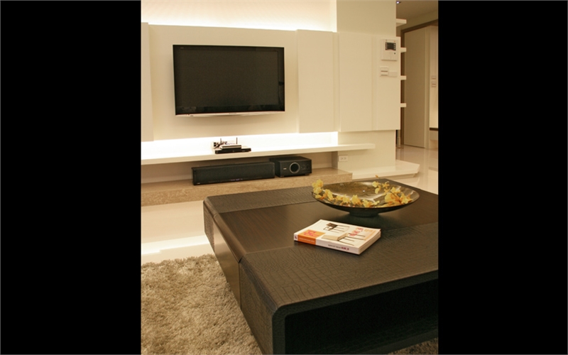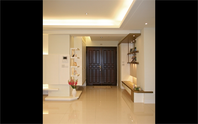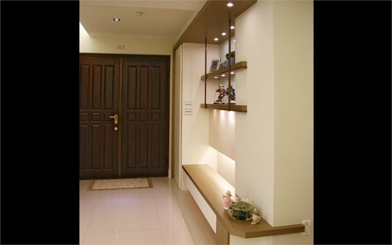 由玄關至客廳,由走道至餐廳,藉由具延伸效果的櫃體設計,帶動視線轉移,串聯各空間,也讓每一轉角處都能妝點幸福的風景。