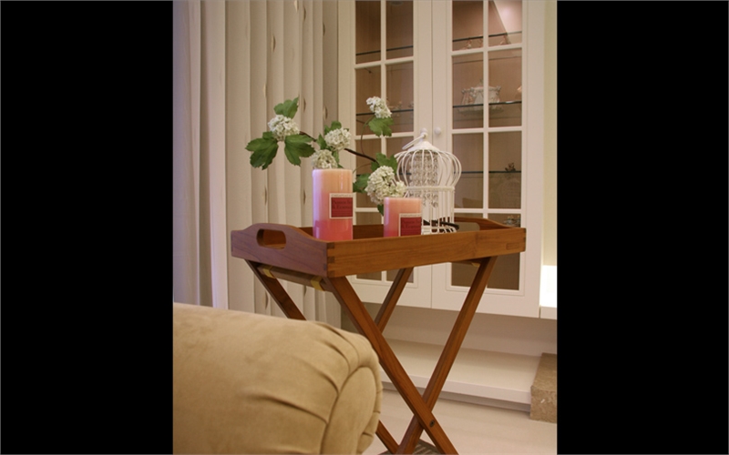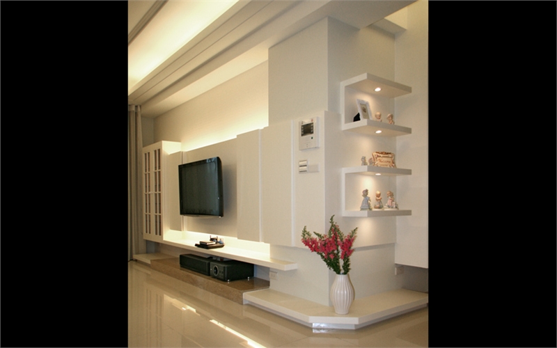 選配曲線柔美的歐式家具,增添奢華感;白色綴以原木色的層板,亦不搶去展示品風采。