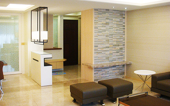 整體以淺色系為基調,並搭以量身訂製的特色燈具,賦予爽朗明亮的悠閒氛圍。