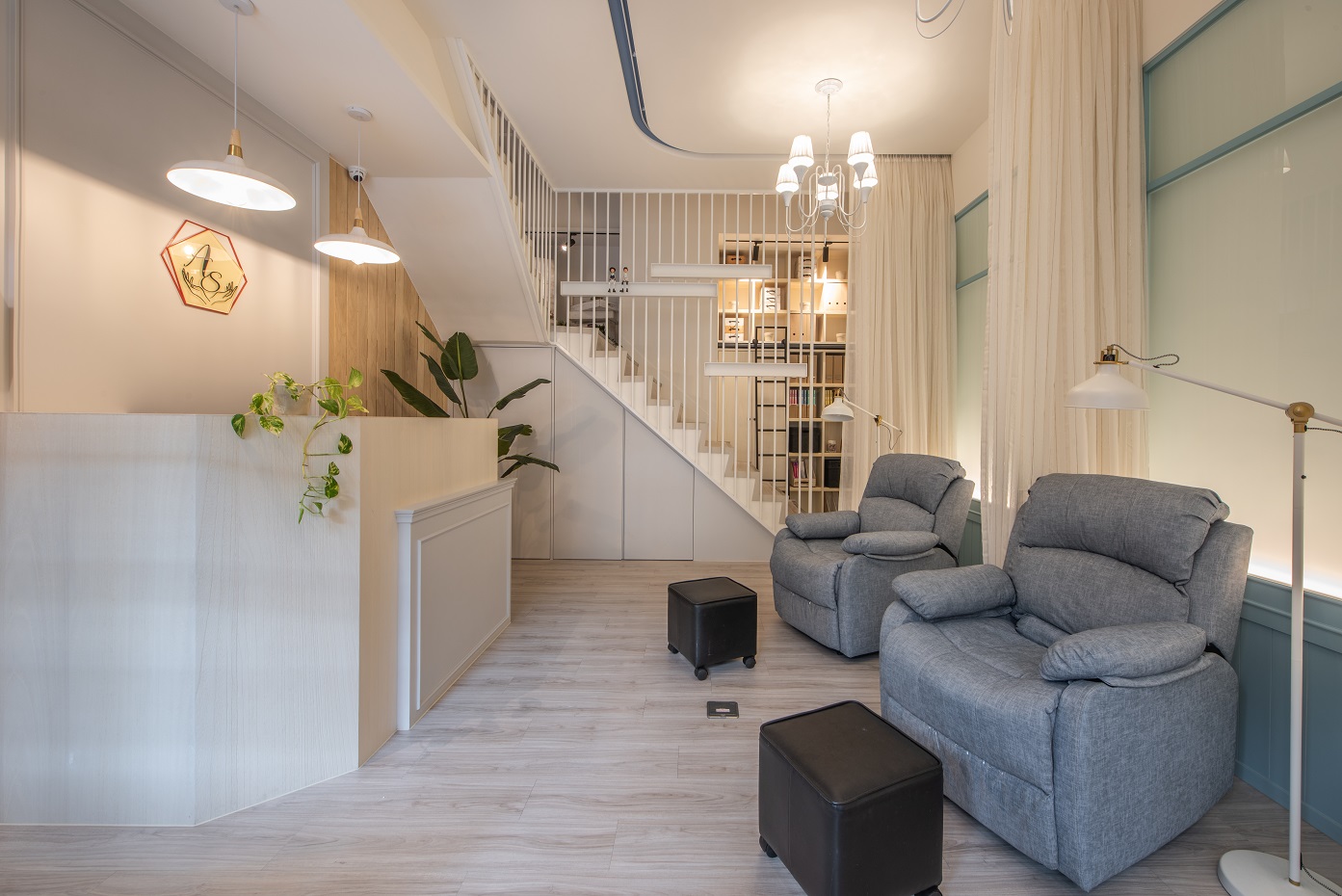 覺穿透,讓整體空間呈現輕盈沒有壓力。在空間風格表現上,利用線板及造型門板