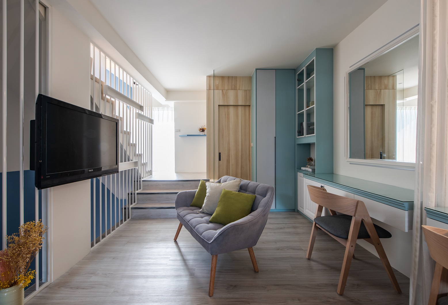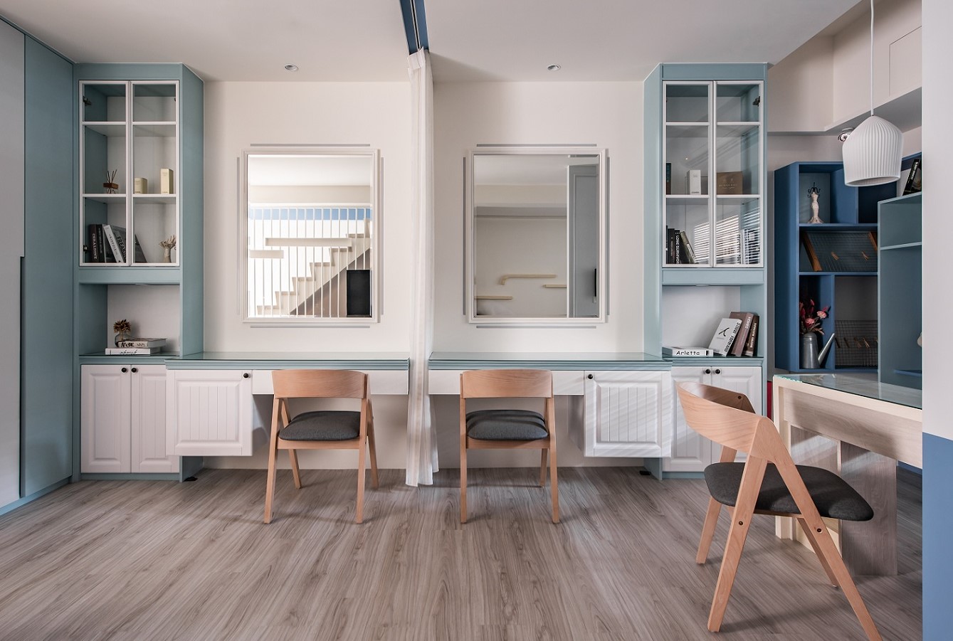 搭配馬卡龍色塊,勾勒出古典又不失時尚的特性,也讓空間更加自在隨興。