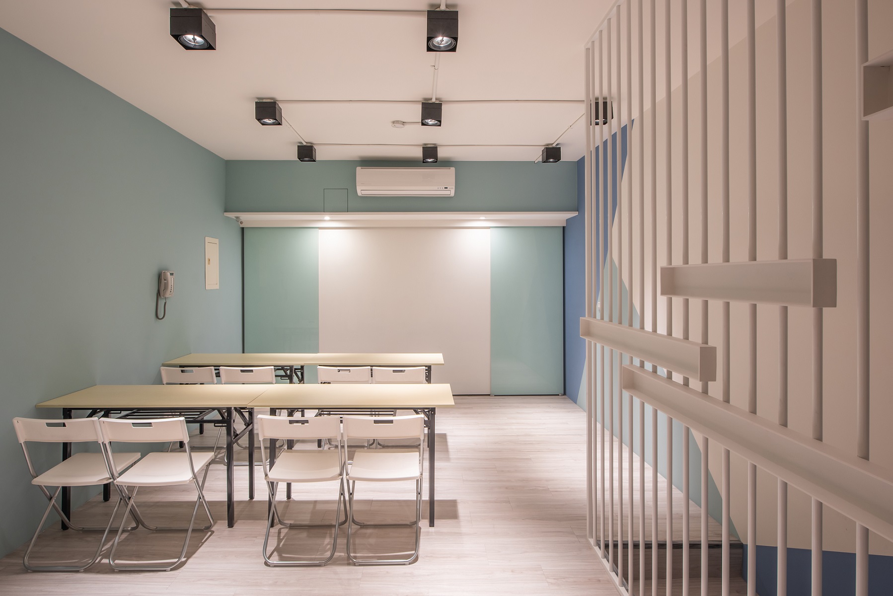 為了解決原有樓梯扶手及隔牆的壓迫感,我們運用細鐵管來虛化樓梯量體以達到視